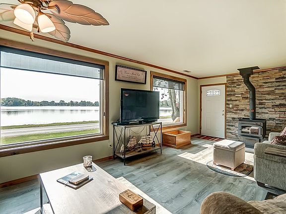 Perfectly fresh Wall Lake home with nearly everything new. This cozy year around home enjoys amazing views across the entirety of the lake, its southern exposure gaining wonderful winter sun through the full width windows. New siding, soffits, fascia and gutters were installed along with a new roof. Windows, doors, flooring and fixtures, too. Updated with new furnace and air, and a garage door as well. Even a new wood stove in the great room for those chilly nights. There is a spacious side deck with expansive views of the lake. All in all, this is a move-in ready, let's go fishing kind of house. Includes kitchen appliances. 240 feet of useable shoreline makes this a real find.