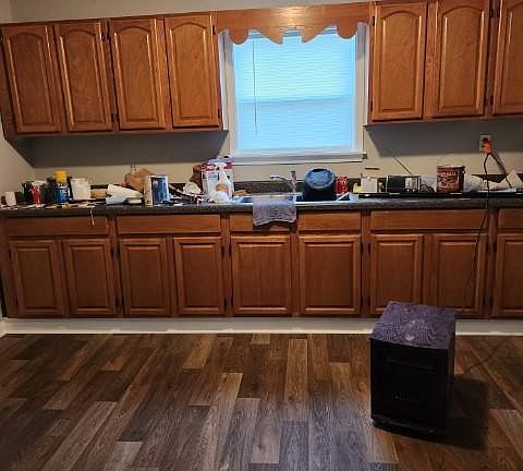 This property has approx 2.10 acres with it in town. 3 bedroom 1 bath home that has some remodeling done already to it. New floor covering throughout with freshly painted walls. Front covered porch to go into home. Has a concrete pad in front so you could install your own garage or carport. Call for your showing today.