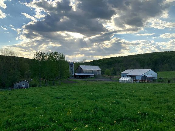 60 acre Farmland With Two Ponds and Beautiful Views in Brookfield, NY! Off-Grid Turn-key Homestead for Sale and Working Farm! 60 acre working farm/homestead boasting a one of a kind setting with a long driveway leading up a small hill to a plateau where you have the farm headquarters. Developed in 2013, the home is an off-grid, homestead with plumbing and water perfect for self-reliant lifestyle. Wonderful variety of features including 2 ponds full of bass, panfish, ducks, and geese. Woodlands are loaded with turkey and deer for hunting. Views of the valley are unbelievable! Country home: Home has a 1,200 ft first floor and 600 square foot half story area for bedrooms. A total of 3 bedrooms and a large living room connected to the kitchen area. There is an open storage barn connected to the house too. The owner is a master carpenter and can change the siding on the house to board and batten per request and could be available to add or adjust any other changes to the home. Buildings: Newer dairy barn with room for 30+ cows, horses, and a hayloft upstairs for storage, milk house, and silo. Chicken coop. Small greenhouse. Storage shed next to home. Land: 2 ponds for fishing, swimming, kayak/canoeing. Interior road leading to a small gravel yard on the property. fencing surrounds all fields and pastures. Incredible mountain/valley views! This property is approximately 30 minutes to Cooperstown, NY, and 25 minutes to Utica, NY for a "go-to" town.