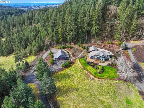 Come and see this beautiful custom home with amazing shop & mountain views! A perfect blend of exquisite craftsmanship, comfort & functionality. A peaceful retreat within minutes of city conveniences & accessibility to various activities. Vaulted ceilings with wood framed windows brings in the warmth of natural light and the breathtaking view of Mt Hood & the surrounding valley. 2 cozy fireplaces are focal points. Primary suite on main floor with relaxing covered deck to take in the view & landscaped yard. Ensuite bathroom with heated tile floor, jetted soaking tub, roll in inlay tile shower, dbl vanity and large custom walk-in closet. The gourmet kitchen is equipped with top-of-the-line appliances, Wolf oven & steam oven, Subzero refrigerator with freezer drawers, induction range with warming drawer, custom cabinetry with drawer & cabinet accessories, island with raised custom glass eating bar, granite counters with sous sink. Easy access to grilling & al fresco dining on the stunning & spacious Ipe deck with cable railing & built in seating. Perfect for relaxing & entertaining. Plumbed for gas and watering planters. This gorgeous home was tastefully updated in 2016 and most recently a new septic, 2 water heaters, chimney repair & more. Surrounded by just under 5 acres of lush, mature landscaped grounds, beautiful in all seasons, terraced gardens, fruit trees, manicured lawns & field. . The amazing 2106 sqft fully finished, insulated shop was constructed in 2016 with a mini split, wood stove, Powermatic dust collector, full bathroom w/shower, loft w/hydraulic lift for engines or projects, 6 in thick concrete epoxy floor with rebar, double 10ft overhead door, pull through, utility sink, air compressor plumbed in various places, attached covered carport & plenty of room for RV & toy parking. In addition, there is an oversized 3 car garage attached to the main house with a half bath, workbench & plenty of storage. Xfinity internet for work & play.