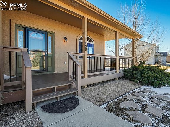 Imagine Living Here!... Spreading Out on 1+Acre of Colorado Countryside and Backing to Pikes Peak Views! Forget crowded subdivisions and cookie-cutter houses, this is the lifestyle you've dreamed of! Welcome Home to this beautiful stone and stucco 2-Story with so much to offer inside and out. You'll love it from first sight... Nestled in the quiet Woodmen Hills neighborhood, you can see for miles from the wrap-around composite porch and huge lot. Step inside to soaring ceilings, a wide-open floor plan and real wood floors which carry you past the formal dining room/optional sitting room and into the heart of the home. The huge kitchen is a cook's delight with tons of cabinets and room to move around. The adjacent optional dining space creates the perfect layout for entertaining or gatherings! You'll seamlessly flow into the large family room featuring a walk-out to the back deck and a gorgeous stone fireplace for those crisp Colorado nights. Head upstairs to revel in the giant 16X20 Master Suite and the adjacent 5-Piece Master Bath... A Jetted-Tub awaits and Free-Standing Shower, along with a generous walk-in closet with built-in organizers. Enjoy two more bedrooms upstairs along with a full bath. Take a trip to the basement for even more living space! There's room for everyone in the Giant wide-open Great Room... Let your imagination run wild with the endless possibilities for using this space! Around the corner you'll find two more bedrooms, a 3/4 bath and a storage room. It's the perfect set-up for a guests or to just spread out. Step outside to the huge back deck to soak-up beautiful sunsets in wide-open spaces. There's so much room to create an outdoor dream space, and it's all yours! Convenient access to Woodmen Road and Highway 24 makes for an easy commute to Peterson SFB, Schriever AFB, and Fort Carson. Shopping and Dining are just around the corner... Convenient and out of sight! Check out the 3D virtual tour... You'll love this one!
