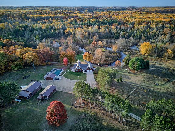 Welcome to the Pine River Estate 80 in ''Up North'' Central Michigan. This beautiful river is known for brook and brown trout fishing. The private secluded setting offers spectacular views as the river oxbows through the property along the stone bank at the base of the bluff atop which sits the spacious lodge. Excellent hunting for deer, turkey and waterfowl. This is truly a ''Woods-Water-Wildlife Paradise'' where the owners are true Stewards of Living ''Life on the Land''.