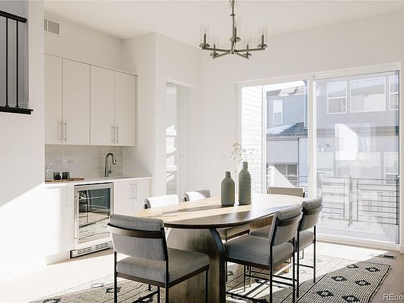 This spectacular brand new Fusion Plan 3 by Infinity Properties brings sky high living to Lyric at RidgeGate. Immediately upon entering, wide stairs and three story volume provide the classic Infinity “wow” factor. Hardwood stairs take you up to the main level which features an open layout with kitchen, great room and dining room with wet bar and beverage center. The kitchen features sophisticated contemporary cabinetry as well as upgraded Bosch appliances including a 36” built-in refrigerator. Relax in the spacious primary suite boasting high ceilings, two walk-in closets and a large spa-like bath with soaking tub. The upper level has two bedrooms each with their own en-suite bath, as well as a large loft. This is the final opportunity for a Fusion Plan 3 on a corner lot, and it is just steps away from the Lyric amenity center featuring a restaurant, pool and fitness center.