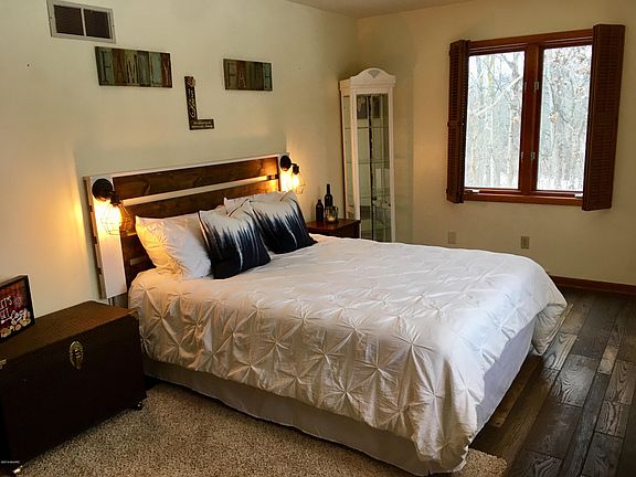 1.5 story cedar sided home set back off Lynch Rd on private 9.48 acre AG zoned property. Located in desirable Pennfield School District. This home features 5 bedrooms (possibly 6), 3 full baths, and hardwood floors. Main floor features living room with wood burning fireplace and glass sliders to back deck, 2 bedrooms including Master bedroom with full bathroom and glass sliders to back deck, sun room\ office with door to deck, Laundry, kitchen, dining room and another full bath. Second level includes 3 bedrooms, full bath, storage closets and a large finished room over garage that could be used as 6th bedroom. 2 car attached garage with access to full basement. Property has large 40x32 pole barn with running water and electric, 1 stall horse barn, an 8x24 chicken coop/shed, and a ...
