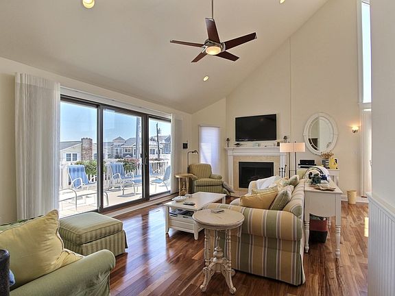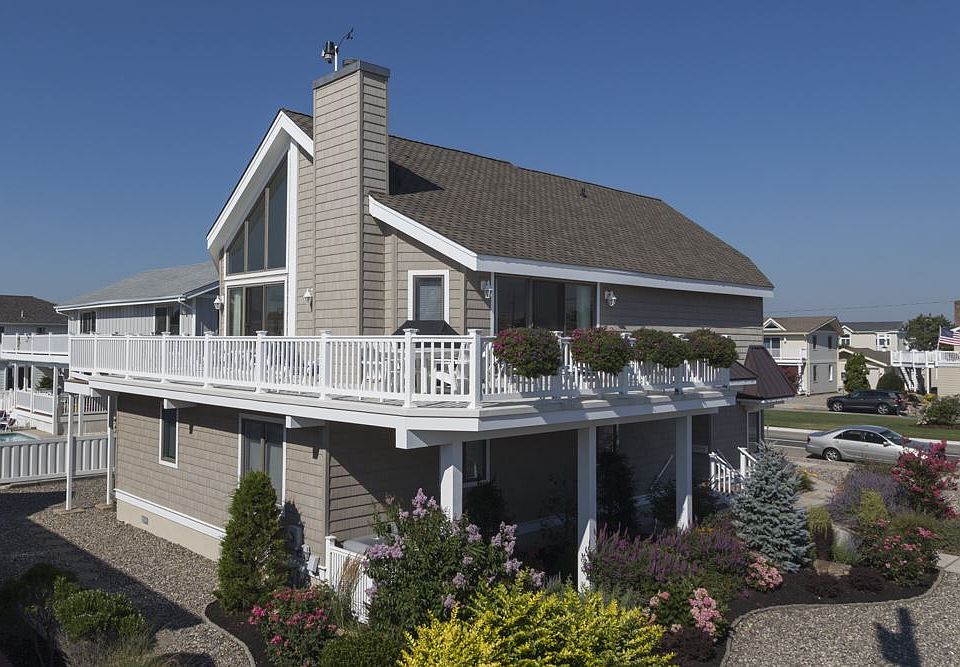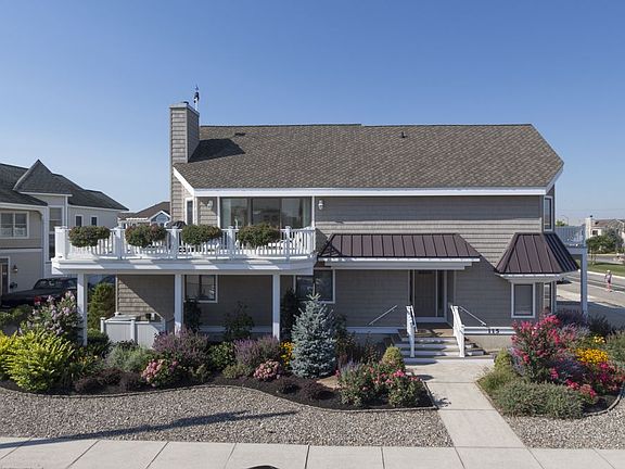 Delightfully well-maintained, Upside- down style home in the beach block features five bedrooms, four full baths and a family room with pull-out sofas for additional sleeping. This corner property is just the fourth home from the beach and offers views of the ocean in two directions, along with views of the Inlet from the Master bedroom and the private deck off the Master. The two car garage, plus a large storage room off the garage provides ample space for storing all your beach toys and deck furniture. The house was re-done about eight years ago, including a new roof, cedar impressions vinyl siding, hardwood floors through-out the second floor, plus a tile hall and wall-to-wall carpet in first floor bedrooms. The kitchen was also re-done with Granite countertops and GE Cafe appliances. Being sold furnished, less the artwork and wall hangings. See listing agent for list of excluded items. Shown by appointment only. All utility wires will be put under ground by Dec. 2015 at sellers expense.