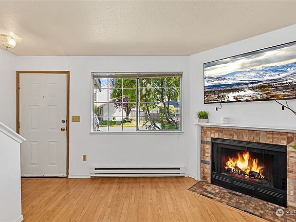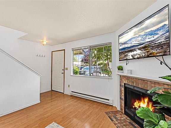 Whether you're an Investor or intend to Owner-Occupy this 2 bed 1.5 bath Townhome is a great buy! Floating wood floors throughout the entire unit, generous living room warmed by a wood-burning fireplace, eat-in kitchen w/ ample counter & cabinet space. Open dining area w/ enough room to enjoy a tech nook & slider to private fully fenced patio & storage. W/D & 1/2 bath on the main floor. 2 large bedrooms Upstairs w/ ample closet space & full bath. Unit includes Carport & 1 parking space, well maintained grounds, & clubhouse all w/ easy access to I-5, Boeing, Restaurants & interurban trail. LOW HOA DUES - W/S/G included! No Rental Cap! Veterans & Active Duty Military Welcome - VA Approved!