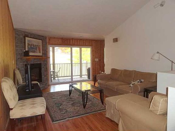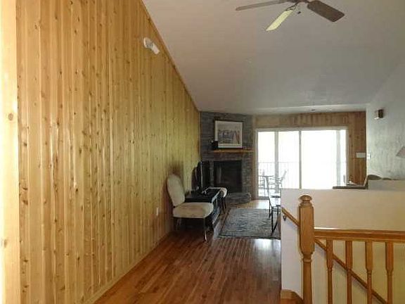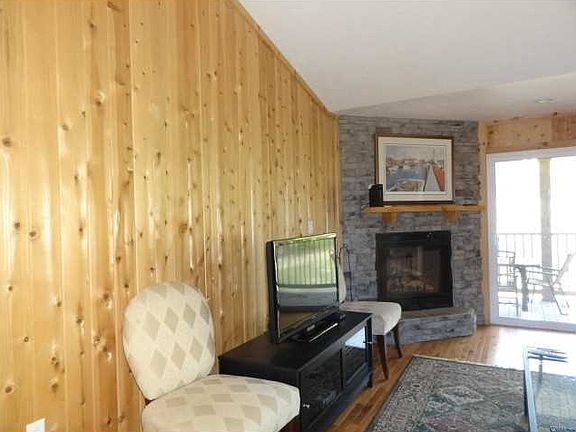 Maintenance free living with this 3 bedroom condo overlooking the golf course; cedar accent walls in living and dining areas; custom kitchen with island; ceramic floor; accent lighting, hardwood floor in living area. Master bedroom has private bath with dual sinks, shower & tub. Condo building has spacious community deck for private parties; each unit has large storage cage in basement of the building. Rent a boat dock at the Marina; golf outside your door; lodge close by with restaurant, lounge