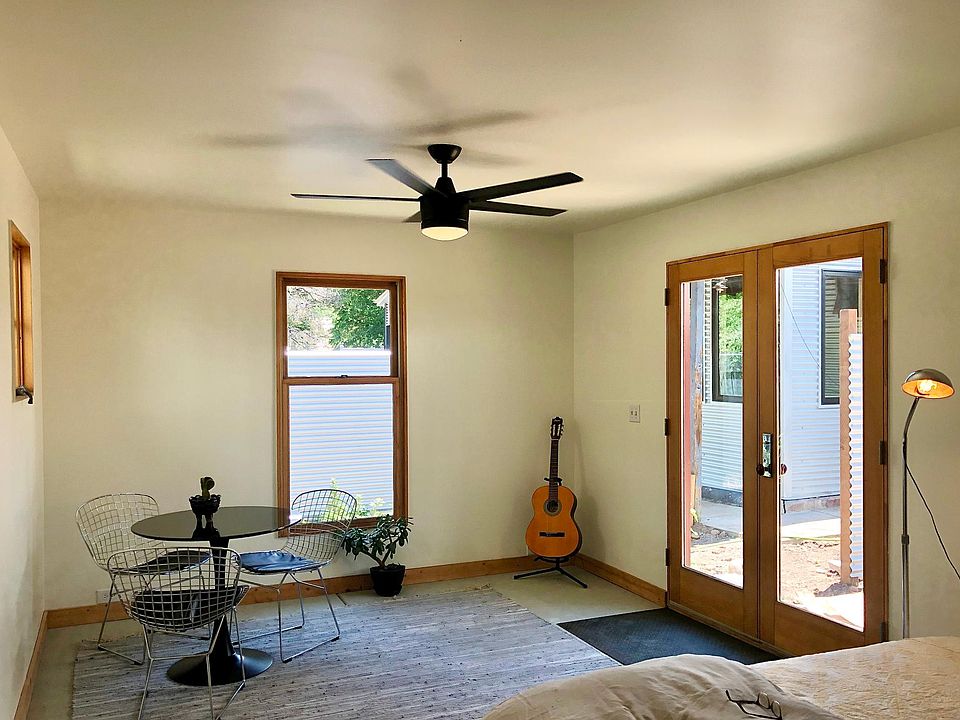 FURNISHED w bedding/dishes. available Jan 1 for 1 month lease only at this point but may possibly be extended. call for details. An amazing well designed comfortable very clean/private space but NO KITCHEN included this unit. Yep, save $ & order take out supporting our amazing local food establishments while enjoying this sweet little space in historic downtown Durango. Much nicer than staying in a hotel! Freshly renovated with eco friendly materials, small clothes washer available. Park your mountain bike right outside your window well hidden from street view & park on site. This space is intended for professionals or mature visitors staying in Durango for a month or so. Great natural light thru insulated Kolbe & Kolbe wood windows & French doors. Walking distance to downtown & Horse Gulch trailhead only 3 blocks away! No smokers or students. Please rent elsewhere if you smoke/vape. A nice room with private entry, bath & yard. 30 day min/no kitchen or cooking device due to city code, but may be rented as additional room to adjacent units. Will consider 1 well behaved crated dog with pet rent/SD but must be very responsible owner. No cats. There is a fenced yard/sitting area but private yard is not yet gated. Nicely fenced so visually private but residences are within close proximity in this family oriented neighborhood so only quiet respectful renters please. Renters are encouraged to bring their own pillow towels. Currently available for February. May possibly be available for rent longer. Text me for details.