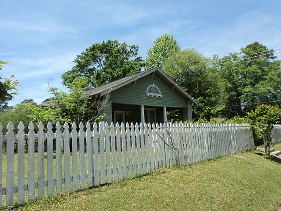 High School Area is the place to be... Nicely updated kitchen, hardwood floors, appliances included, storm windows, extra insulation blown into the attic, floored storage in attic. Features include original claw foot tub, french doors, tall ceilings and hand painted artwork in 2 bedrooms. Enjoy the neighborhood while sitting on your large front porch. A white picket fence defines the front yard. Out back you'll find a shop complete with water and electricity. Exterior repainted about a year ago.