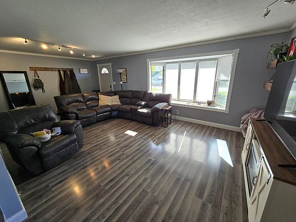 New to the market! Single story ranch style home located on corner lot. Spacious living room with bay window and formal dining room with attractive vinyl plank flooring. Kitchen features granite counter top, farmhouse sink, stainless steel appliances plus a dining/sitting area by the patio door.. perfect to relax with your morning coffee! 3 main floor bedrooms- primary bedroom has large walk in closet! Updated full bath & plenty of hallway closet space. Basement is partially finished with bonus room with egress window. Utility room includes laundry with utility sink, water softener, gas water heater, air exchange unit, and forced air furnace. Backyard has privacy fence and 23x12 deck, and even a garden area! Seller just recently installed new pvc sewer line from the house to the street. Attached garage with access to fenced in backyard & storage shed.