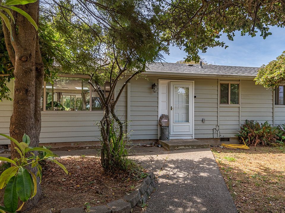Discover this truly exceptional and completely renovated 3-bedroom, 2-bathroom ranch, a hidden gem ideally situated within a two-minute walk of Bandon's vibrant Old Town. Enjoy the ultimate in privacy and tranquility with mature landscaping surrounding this large corner lot, creating a secluded retreat. Step inside and be impressed by the thorough cosmetic remodel completed just six years ago, ensuring a fresh and stylish feel throughout. This includes all new windows, doors, appliances, and interior finishes. The heart of the home is a sunny and open kitchen, flowing effortlessly into the dining and living areas, perfect for entertaining. Granite countertops and skylights infuse the space with natural light, creating an inviting atmosphere.Beyond the aesthetics, numerous functional upgrades ensure comfort and peace of mind. A new roof, efficient ductless heating system, updated toilets, showers, light fixtures, and a fresh coat of paint inside and out are just a few of the improvements. Custom window blinds and beautiful wood floors add to the home's allure. The living room fireplace, currently capped, presents the opportunity to be easily made operable again, adding a touch of cozy charm. The spacious backyard, enveloped by mature trees and shrubs, offers both privacy and protection from the wind, while still welcoming abundant sunshine for relaxation and gardening. Aspiring urban farmers will delight in the potential to restore and develop the existing garden beds and fruit trees, cultivating their own fresh produce. A good-sized chicken yard is also readily available to be put back into service or adapted for other uses, offering a taste of sustainable living Imagine a short stroll to the beaches, schools, parks, shopping, and all the delightful charms of Old Town Bandon. Don't miss this one! Please do not disrupt the tenant and make an appointment for any showings.