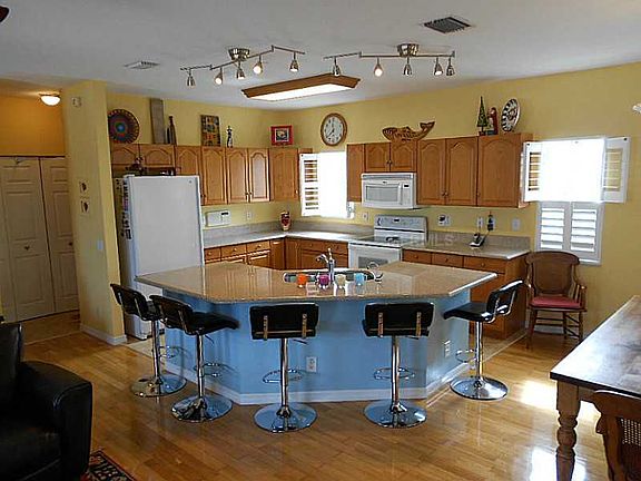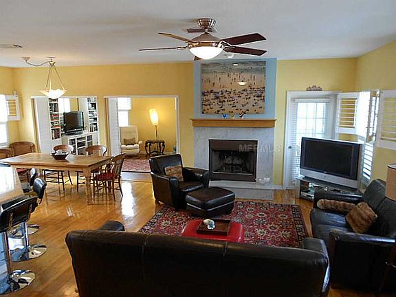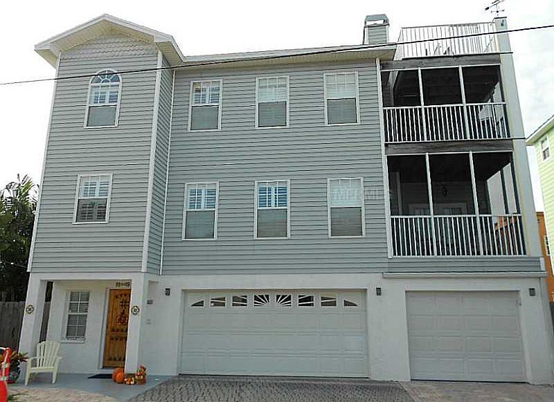 Live life at Sunset Beach! A short walk from the Gulf of Mexico & beautiful sand beach. This modern Key West style home has an inviting entry, paver drive & fenced yard. Walking through the one of a kind handmade Mexican door into the foyer you'll notice the pride in craftsmanship. To the left is a spacious coat room. To the right is your 3 stall garage featuring painted floor, add'l work space, central vac & lots of room for beach toys. The second floor opens to a spacious great room with wood fireplace, open kitchen & dining area, plus add'l den area with screened deck, prefect for entertaining. Notice the stunning wood floors, updated granite counters, lighting with Italian Carnival glass, plantation shutters, & ceiling fans. A modern half bath & laundry complete this level. Third floor has plantation shutters as well, an open hallway leads to 2 guess bedrooms & fully updated bath with granite & tile. At the end of the hall is your master suite with amazing bath, twin granite sinks, tiled 3 headed shower & bench. French doors opens to 2nd screened deck with access to the Eagle Nest the 4th level for water views of the gulf & intra-coastal. Your new home is near shopping, restaurants/bars & again the BEACH, how sweet is that?