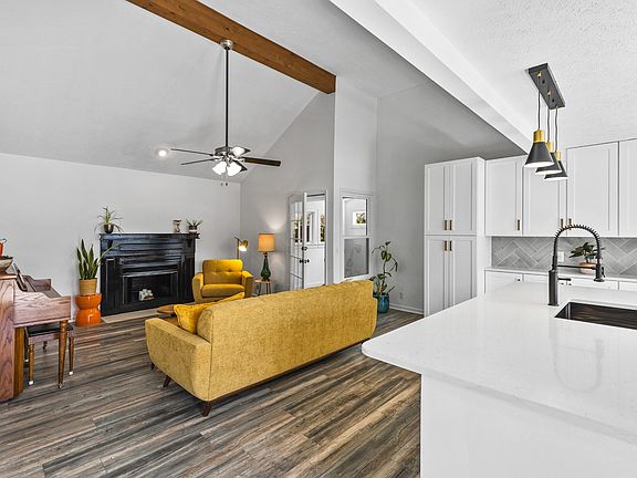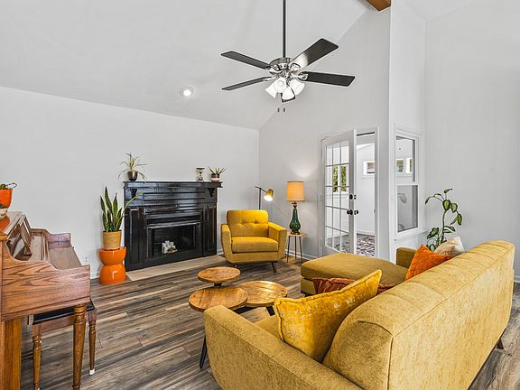 Come see this one-of-a-kind, modern renovation with a new mud room/sun room addition in family-friendly Glen Oak! The new kitchen features stunning quartz counters, black and brass fixtures, upscale tile, a large bay window perfect for your herbs and plants, extra cabinets for ample storage, and extended countertops for your coffee bar/wet bar. The vaulted ceilings really make the space feel open and the exposed beam in the living room feels mid-century. New windows. Newer roof (8yrs old). New water heater. Newer appliances. New paint throughout. New bathroom vanities, tile, shower/tub, and brass fixtures. The spacious primary suite features vaulted ceilings and a corner bay window with a ton of natural light and room for your office or seating area. The secondary bedroom also features a spacious bay window and can accommodate a double or queen bed. The fully-fenced back yard with mature trees, feels like a cozy retreat, and it backs up to the neighborhood common area, and a pleasant little creek - so you aren't looking into neighboring homes directly behind you. The community pool, dog park, and play area are only steps away, and your kids will easily make neighborhood friends, as the kids are always out playing. Small covered front patio, and front of home features new black exterior lighting fixtures. Sellers prefer no sign in yard. Come see it before it's gone!