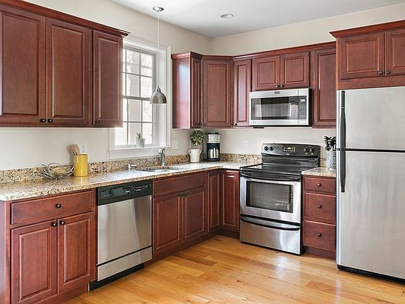 LOCATION! Welcome to luxury living in this END UNIT townhome conveniently located in the heart of desirable Wakefield! Ideal for commuters or those looking for modern conveniences right outside their doorstep, including commuter rail, many restaurants and shops in downtown, beautiful Lake Quannapowitt, and easy access to major routes The spacious main floor of this tri-level unit features open concept living room, dining room and kitchen with quality finishes - stainless appliances, granite, cherry cabinets, pantry, hardwood floors. Sliders to deck and a half bath finish off this level. The sun filled top floor master bedroom connects to a spectacular private roof deck, perfect for enjoying the outdoors on sunny days and relaxing at twilight. The second floor has two spacious bedrooms with double closets and a full bath. Oversized windows and high ceilings create a bright, airy space you'll love. Low fees, pet friendly. Start enjoying one of Wakefield's finest roof decks this summer!