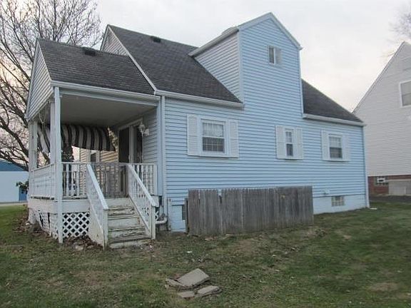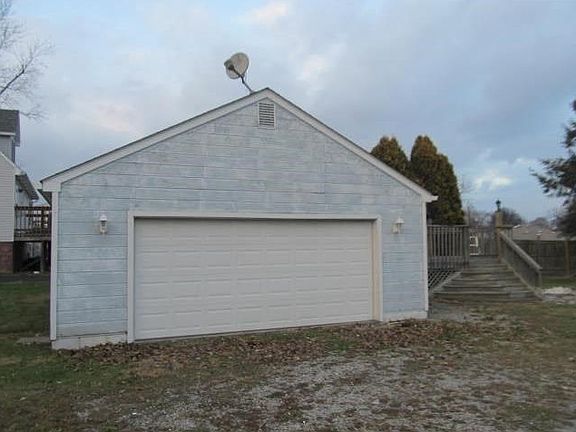 1.5 story vinyl sided cape-cod style home with large rear level yard, covered side porch, and 2 car detached garage. Updated kitchen cabinets, counters, and lighting. Sliding glass doors from the kitchen area to the side covered porch. Living room with wainscoting and neutral carpeting. Many updates to the main level full bath including ceramic tile flooring. 2nd full bath on the 2nd level. Basement is partially finished.