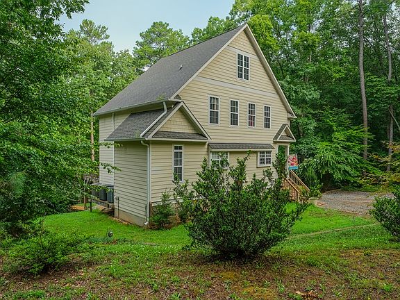 HIDDEN GEM! Just off the main lake, this little slice of heaven is tucked way on a very PRIVATE cove on Songbird Creek. This waterfront home boasts a large lot, deep water (8'), boathouse with sundeck & boat/jetski lifts, 2 deck levels overlooking the water, and a walk out basement with concrete patio area w/ outdoor shower. Inside you will find 4 bedrooms, 3.5 bathrooms with 2236 sqft PLUS an additional 1215 sqft of unfinished basement that holds so much potential. The main floor has open floor plan that includes beautiful hardwood floors, vaulted ceilings, crown molding and recessed lighting throughout, large family room with gas fp, dining room area, full kitchen with island, 3 glass sliding doors opening up to the main deck overlooking the lake, and the master bedroom which boasts trey ceilings, large walk in closet, attached full bath w dual vanity, garden tub & separate shower.