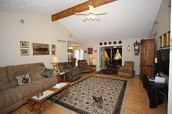 Splendid One Level Living, 3BR/2.5BA 1900sqf created w/ideal features. Vaulted Ceilings,hardwood floors plus French doors to the all season room provides an open & engaging floor plan. Large kitchen w/plenty of cabinets & tile countertops plus a work desk. Sizeable Master suite w/dressing vanity & walk in closet. Welcoming back deck w/nook for outdoor dining. Beautifully Landscaped, Level yard w/ RV parking pad w/220 hook-up & storage bldg. 2 car garage w/epoxy floor & wipe-able painted walls. 10 miles to shopping & Branson Airport.