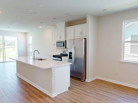 The Arabelle floorplan offers everything you need for comfortable, modern living. Its open-concept design seamlessly connects the Great Room, kitchen, and dining areaideal for both everyday family meals and memorable gatherings or celebrations. Step outside to the covered lanai for even more room to relax or entertain. The spacious owners suite is a true retreat, featuring a private bath and a generous walk-in closet. Bedrooms 2 and 3 are thoughtfully positioned near a shared hall bath and a conveniently located laundry room.