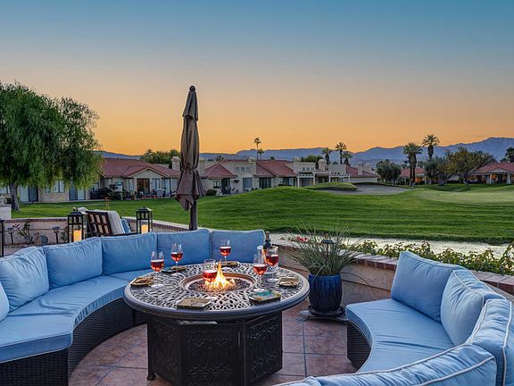 You know ''you've arrived'' upon entering this unique and meticulously maintained, sun-kissed oasis, featuring 4 bedrooms and 3 full bathrooms. With an open floor plan ideal for entertaining, and a newly remodeled chefs dream kitchen. Boasting granite counter tops, extensive cabinetry, gas range, and a cozy, sun-filled Breakfast Nook, opening out to an extended patio overlooking the water, on the 1'st hole and verdant fairways. The large, sun filled, tastefully furnished living room quarters is complete with Stack Stone Fire & Ice Fireplace and Spectacular Views of the Mountains and Golf Course. The Primary Suite is tucked back away from the main entertaining rooms, in a nice quiet space with French Doors opening out to a small private sitting area. The second and 3rd guest bedrooms & 3rd bathroom are up the luxurious Hardwood Staircase which opens out to the viewing deck where you'll want to spend the entire day! This is truly the epitome of Luxury Resort Living with Golf, Tennis, Pickleball, Fitness Center, Club House, Pro-Shop, Swimming Pool and heated Spa, all within walking distance from your front door! Desert Falls Country Club has it all! Within walking distance to restaurants, shopping, and a few miles drive to Acrisure Arena, McCallum Theatre and El Paseo with upscale Galleries and Fine Dining. This uniquely beautiful, customized home with its multitude of upgrades including a brand-new HVAC is not to be missed! Call today for your private tour.
