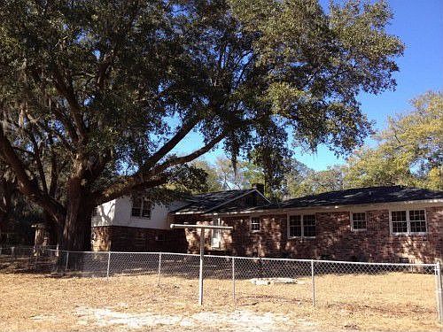 A rare find..."out" but "in." Five acres of country living with civilization right around the corner. There are two ways to look at this property, as a private estate or as the perfect space for a developer to subdivide and build a small subdivision. The property consists of 5 acres with TWO brick ranch homes each with three bedrooms and two full baths, separated by a 4 car garage. The houses do need to be fixed up and are missing some of their fixtures and HVAC connections. The garage module also boasts a bonus room with gleaming hardwood floors and windows overlooking the pond. Under the garage is a basement with fireplace that runs the full size of the 4-car garage. Each home has its own fenced backyard. The land consist of 5 acres with beautiful large oak trees and a pond that runs on the side of the property and behind both houses. Much of the property has been cleared. There is plenty of additional workspace with 2 metal barns and a large workshop. A secluded paradise minutes to Thornhill Farms' Cafe and Market, HWY 41, and 5 minutes to Harris Teeter.