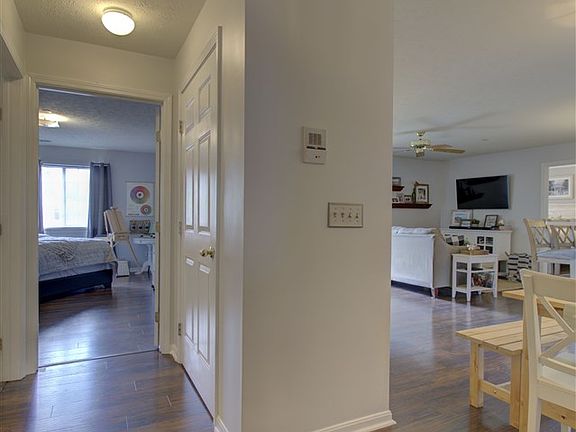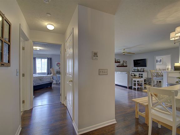 Absolutely adorable 2 bedroom 2 full bath condo with one car detached garage. Patio walks out to view of community lake. Hardwood floors thru-out* 2 closets in master suite* Open and bright floor plan* 7 steps down to front door of building then walk straight back to unit. You can also walk around back of building and enter thru sliding doors. Super cute!!!