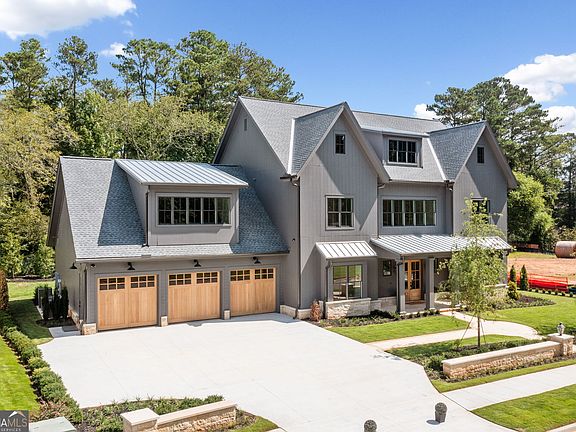 Renowned Chatham quality in the heart of Alpharetta's most sought-after gated enclave. Complete and move-in ready! Southern Living Magazine's Custom Builder of the year, Chathambilt Homes is proud to announce its newest gated luxury community, Baxley. Located a mile from Alpharetta's City Center, Baxley is an exclusive enclave of 6 custom homes featuring unparalleled luxury appointments. As you approach the home on the hand cut limestone walkway, you are greeted by the warmth and ambiance of the Bevolo gas lanterns. The exterior of the home is wrapped in Artisan siding by James Hardie Vertical Siding featuring Pella Windows and Doors with stained tongue and groove porch ceilings. Once you enter through the mahogany doors, you the step onto the herringbone white oak flooring in the foyer as you enjoy the views of the open floor plan leading your eyes to the floor to ceiling glass wall. The home also includes custom inset cabinets and built-ins capped with quartz countertops and backsplash throughout, Sub Zero/Wolf appliances. The expansive family foyer that one enters off the garage has well thought out custom built cabinetry with ample storage to organize a busy lifestyle with flare and design. Main living room opens seamlessly to the vaulted covered porch. Primary suite on main featuring louvered sleeping porch. Kohler plumbing fixtures, pad for a swimming pool, Schluter master bath heated floor underlayment and heated shower seat, curbless double French-door shower, double water closet and vanities in the master bath, marble tile throughout, elevator ready closet, tulip poplar ceiling accents, soft-close interior slider doors, premium closet systems, dog wash, pet food and water station, built-in reading nook, and a 3 car garage with Clopay cedar overlayed cedar garage doors and composite garage floor finish are some of the amazing custom details featured in this home. The second floor features three ensuite bedrooms and a loft area and large bonus room. The home was constructed with energy efficient systems including Rinnai tankless water heaters, radiant barrier roof sheathing, cellulose insulation, Zip wallboard system, and 90%+ efficiency furnaces This home has the pool permit available.