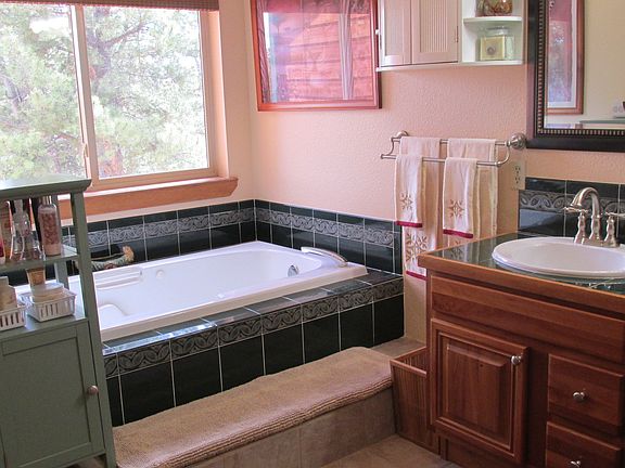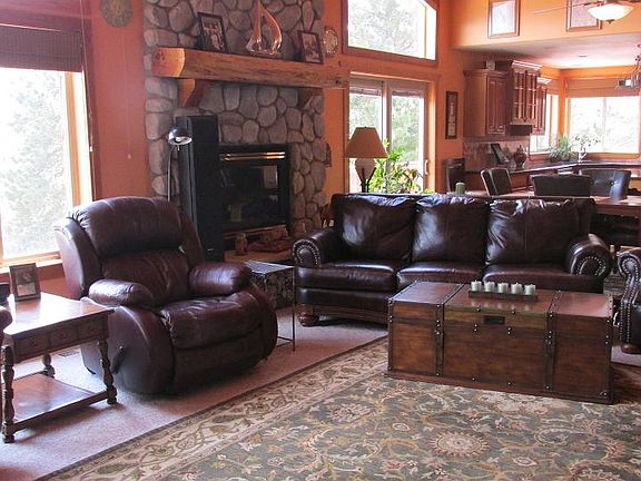 Luxuriously warm & inviting, this immaculate home oozes the beauty & comfort of mountain living! Spectacular Pikes Peak views & cheery sun stream through upper & lower-level windows & French doors. From the paved drive to the private & beautifully treed yard to the grand covered entry porch with waterfall, you'll anticipate the delights that await you inside. Foyer & separate office greet & lead you to the living room with gas-log fireplace & huge windows that frame the view. Upper & lower laundry rooms plus a gracious floor plan provide easy main-level living. Formal & informal dining areas, spacious living & family/rec rooms, and generous deck offer wonderful opportunities to entertain guests & family members alike. And who wouldn't love the rich cherry cabinets, gleaming oak floors, quartz counters, pantry, pot rack, and stainless steel appliances in the gorgeous kitchen with its own dining area? Master bedroom suite features French doors, large walk-in closet, jetted tub with view, large tiled shower & separate water closet. Wood ceilings, log railing, cultured river rock fireplace & hearth, wood floors, cedar siding, and post & beam porch are just enough rustic touches to complement the lovely mountain setting & views. Family room with pellet stove can accommodate numerous recreational activities such as dancing, billiards & darts while still having plenty of room for seating. Don't forget the neighborhood lakes & ponds that allow fishing & small boats. Home is also equipped with an intercom system, radon-mitigation system, and 2 storage sheds. Insulated/tape/texture garage. Located approximately 20 minutes from Woodland Park; 40 minutes from Colorado Springs; 40 minutes from 11-Mile Reservoir; and 90 minutes from epic ski resorts & legendary rafting adventures.