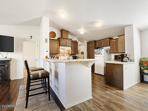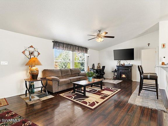 Nestled in the serene Pine Creek neighborhood of the Village of Oak Creek, this charming 3-bed/2-bath home is the perfect desert oasis! This 2016 build features an open floor plan with vaulted ceilings, upgraded kitchen cabinetry, an oversized laundry room, and bountiful outdoor spaces. Each spacious bedroom features its own walk-in closet and high ceilings, WOW! The front deck is wonderful for watching the early morning sun filter across the sky. The upgraded paver driveway, RV parking, fenced backyard, and cleanly landscaped spaces give you ample opportunity to make this your own. Conveniently located just minutes from shopping, dining, grocery stores, and miles of hiking trails - this property has it all. Schedule a showing today! Hot tub and small storage chest do not convey.