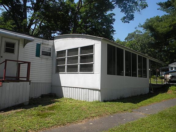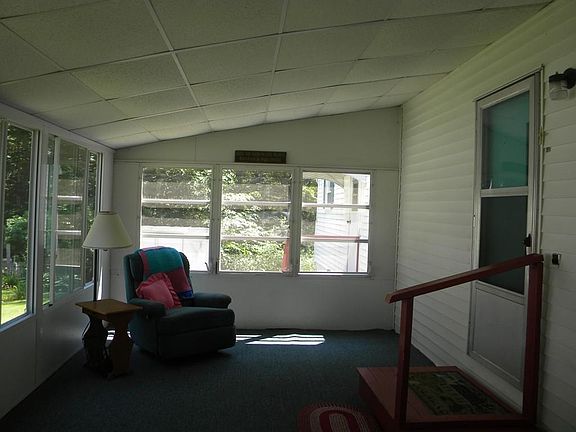 This bright and clean home is READY TO MOVE IN!! Enter your home through your 3 season room which has large sliding thermopane windows all around. Step into your beautiful kitchen with new refrigerator and open concept to living room. There is a small 2nd bedroom /office with a closet. The bathroom is full size with new stackable washer and dryer. New carpet and vinyl flooring. Main bedroom windows allow for a great view of nature at it's best! Plenty of storage in your backyard shed. Welcome to your new home! Halifax Estates is a 55 and older community, the lot fee is $610/month which includes basic cable, rubbish/recycling and yard waste pick up, as well as maintenance of the septic system. There is a one time Membership Share of $1800.