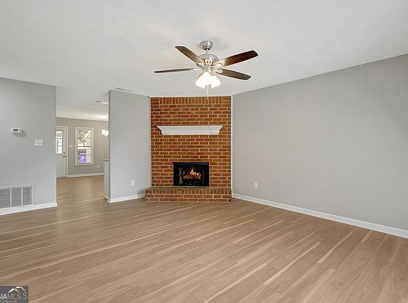 Beautifully updated 2 bed/1.5 bath unit featuring granite countertops, stainless steel appliances, and LVP flooring throughout. Spacious floor plan with large bedrooms, generous closets, and a working fireplace. Washer and dryer included. Fenced in yard and lawn care provided. Enjoy a private patio and plenty of parking. Conveniently located minutes from Downtown Fayetteville, Trilith, schools, shopping, restaurants, and entertainment. Move-in ready and easy to show!