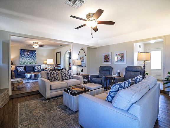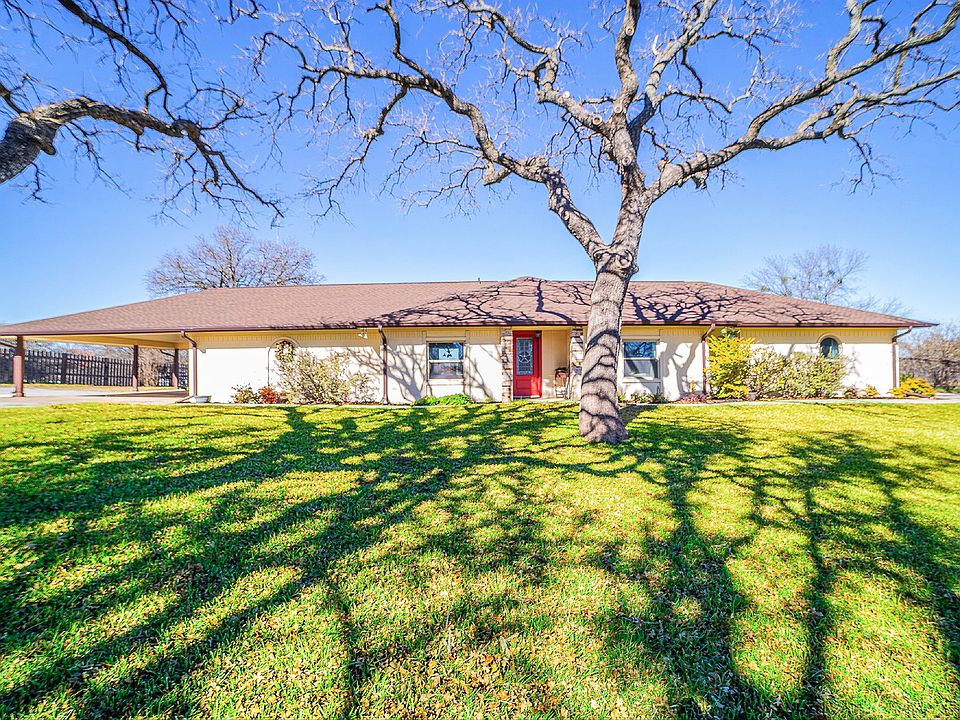Discover this 1979 ranch-style home in Oakwood Estates in Weatherford. Located in the county on a combined 4.82 acres with portions of the land being fenced and cross-fenced, this property offers functional areas for animals including a 30x28 barn with 3 stalls, and separate pastures. The property blends tranquil country living with convenient access to nearby city amenities. The home offers 3 bedrooms, 2 bathrooms, 2 living areas, and 2 dining spaces for flexible use. The front of the property is highlighted by gorgeous mature oak trees, creating a welcoming, park-like setting and strong curb appeal. Enjoy meaningful savings with no HOA fees, no water bill, and no city taxes due to the location. An attached 2-car garage plus 2-car carport provide ample covered parking. The 3-stall barn also features an upstairs finished space currently being used as a “man cave” or hobby room. The barn adds excellent potential for animals, storage, or a workshop. Additional tax savings are available as this property currently has an agricultural exemption.
