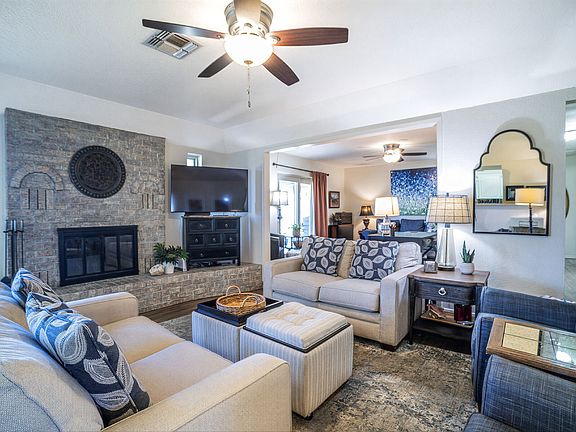 - Fireplace features: Den, Raised Hearth, Wood Burning