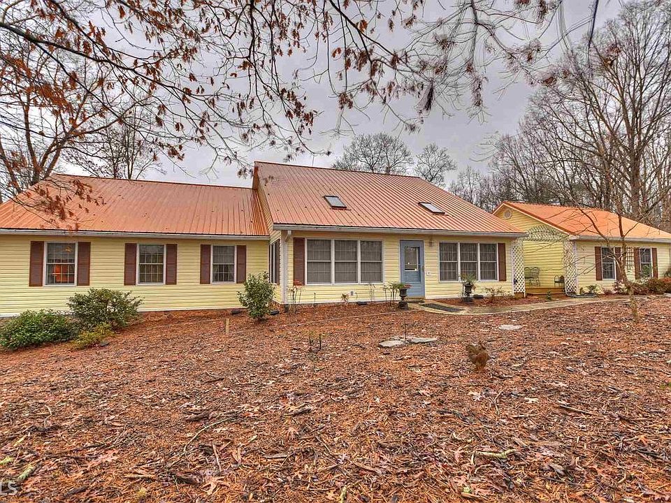 Wonderful one level living home, located only 2.5 miles from downtown Ellijay! This large home features low maintenance vinyl siding, 2 car garage, a 1 year old metal roof & over 3 acres w/ a fenced garden area! Travel inside to find a sitting room, large great room w/ custom built in bookshelves, gas log fireplace, a sun room & plenty of space to enjoy your favorite book. Adjacent breakfast room has lots of light & the large, well equipped kitchen is a cooks dream w/ island prep sink, gas stove & ample counter space. Large master suite features a walk in closet, double vanity, tile floors & shower. 2 additional bedrooms w/ Jack n Jill bathroom round out the main level. Looking to supplement your mortgage? The basement includes an entire 2nd house.