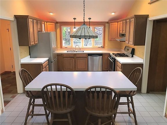 Durand Eastman Park will be your backyard with this sprawling 2000 SF East Irondequoit Ranch! Features include: an open floor plan with vaulted ceilings and skylights for lots of natural light. Large eat-in kitchen with Island, tile bathroom with jacuzzi tub, living room with amazing park view and gas fireplace. Heated all-seasons room, first floor laundry, partially-finished walkout basement with newer laminate flooring, rec room, and workshop area. Huge deck ideal for entertaining and observing local wildlife. Central air, roof 5 years, replacement thermopane windows throughout. A unique private setting conveniently located near shopping and expressways, call today to see your new home!