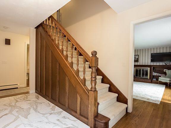 This lovely Cape welcomes you in with a marble foyer and craftsman woodwork. The large kitchen features granite counters, pantry, pellet stove and a large island. Through the french doors you will find a gorgeous four season sunroom with cathedral ceilings overlooking the back yard. There is a formal dining room and living room with fireplace and bay window. Large first floor bedroom with walk in closet. Stunning new marble bathroom. First floor laundry room. The second floor features 2 more large bedrooms. One with a walk in closet. Second floor full bathroom. Beautiful hardwood floors! There is a bonus room connected to the house by a back staircase. It is not heated or included in square footage. Picturesque stone wall and generator connection. the owner/seller is willing to work with you directly or with your realtor.