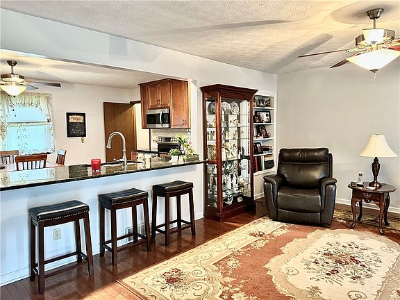 Nestled on a serene lane in Neshannock Township, this spectacular raised ranch offers an ideal blend of comfort, modern updates and functionality. Step inside to discover a spacious living room adorned with gleaming hardwood floors, seamlessly flowing into a fully equipped, eat-in kitchen boasting sleek stainless appliances, custom cabinetry, granite countertops, and elegant ceramic flooring. Hallway leads to three inviting bedrooms, including a master suite complete with an en suite bathroom. An updated guest bathroom showcases a ceramic tub surround, oversized vanity, and cultured marble countertop. Host the holidays in the inviting step-down family room boasting a touch of rustic flair. Walls rise to meet beamed and vaulted pine ceilings, octagonal windows, and a cozy woodstove, perfect for relaxing or entertaining guests. Basement offers additional space with a game room, laundry room, third bathroom, and two bonus rooms ideal for storage or customization to suit your needs.