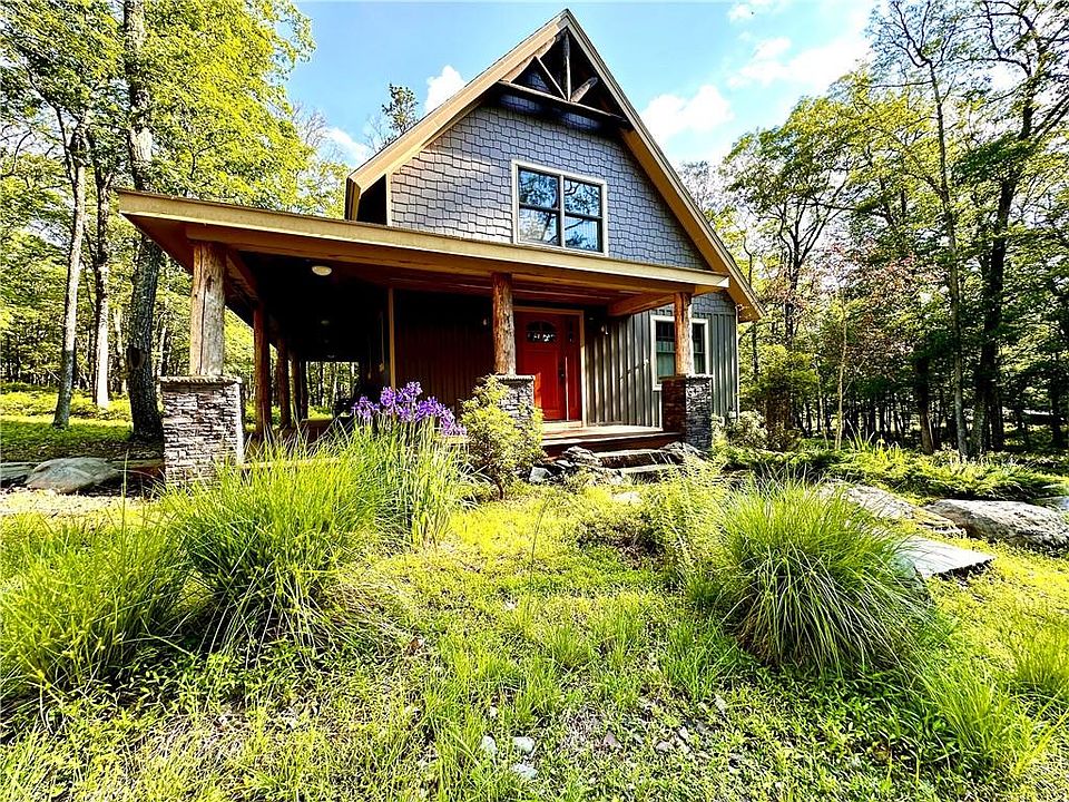 BEAUTIFUL HOME SITUATED IN A GATED 2000 ACRE PRIVATE CLUB - Welcome to Black Forest a stunning, rustic, undeveloped and very peaceful paradise. If you love nature and would dream of being able to walk out your front door to hike, take a dip in the falls, trout fish in the Millbrook, ride your ATV onto miles of marked trails, go hunting, then Black Forest is for you. This home is essentially brand new built in 2016 with quality throughout, Hardiboard siding, spray foam insulation, Andersen windows/French doors, wood throughout that offers a very warm and inviting atmosphere for your country getaway. The open floor plan, vaulted ceilings and a wood burning stove for cozy nights is just the place to be at the end of an adventurous day. Bonus, walkout basement is partially finished and offers additional living space and the garage/workshop has a nicely finished room upstairs for the best home office, studio, guest accommodations or a pretty cool man cave. Approximately 2+ hrs from NYC, 20 minutes to trains makes this special home a very easy commute. Close by you'll find many quaint towns for dining/shopping, the Delaware River for rafting/fishing, Bethel Woods Preforming Arts Center, Kartrite Indoor Water Park, Resorts World Casino, skiing at Holiday Mountain/Big Bear at Masthope Mountain, a few miles away the Kadampa Mediation Center, many amazing hiking/biking trails and absolutely the best farmers markets you'll find anywhere, all for a very beautiful life in the country.
