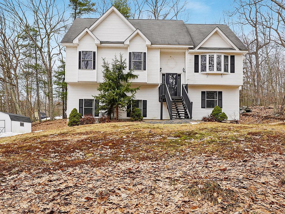 SENSATIONAL SPLIT LEVEL ON 1 ACRE IN DESIRABLE DV SCHOOL DISTRICT COMMUNITY! Located in one of Pike County's most sought after communities, find this 3 bedroom (plus bonus 4th bedroom) & 3 bath gorgeous home! This 2400 SQFT home offers tons of upgrades in addition to a private and tranquil setting! Inside, gorgeous hardwood, cherry floors lead to a 2-story great room, w/brick faced fireplace. An exposed beam over head brings the rustic charm. An open living, dining, & kitchen floor plan is perfect for entertaining! Stainless steel appliances & a mosaic tile backsplash bring a modern feel. 3 bedrooms & a full bathroom on this level. Upstairs, a loft plus a huge, private master suite w/ attached bath & 2 closets! Cozy family room...