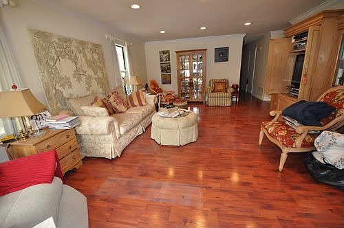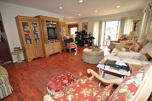 BEAUTIFUL END UNIT*SPECTACULAR NEW EAT-IN-KITCHEN W/EVERY BELL & WHISTLE! GORGEOUS CONDITION*NEWER WINDOWS*BRAZILIAN CHERRY-SHADE PERGO FLOOR THRUOUT EASY TO CLEAN*2 BIG BEDRMS*2 FULL BATHRMS*LOTS OF CLOSETS*WONDERFUL CONVENIENCE TO TOWN CENTER*FOYER W/CER.TILE*CROWNE MOLDING THRUOUT*RECESSED LITES THRUOUT*SLIDER TO PATIO*