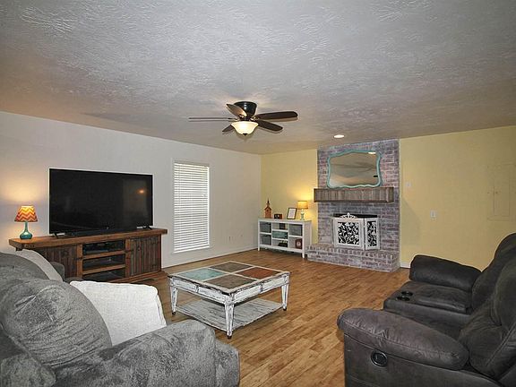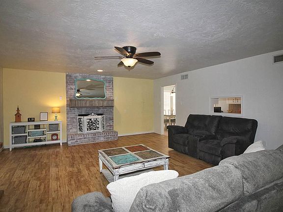 Dont miss this precious farmhouse in HJISD! Enjoy family time in the large living area complete with fireplace and laminate wood flooring. Spacious master suite located downstairs with two secondary rooms and a full bath upstairs. Room to roam outside and a bonus brick storage room/workshop with electricity and water hook-ups. *No flooding, per seller*