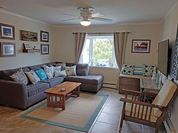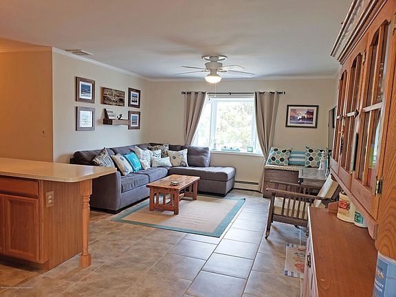 WATERFRONT GETAWAY! Your vacation home at the Jersey Shore. A perfect place to live, this charming ranch home feels like a beach vacation. A bright and inviting living room features a picturesque bay window. The kitchen has ample counter and cabinet space with stainless steel appliances and beautiful ceramic floors. Three bedrooms and main bathroom with a linen closet are off the hallway and include an additional hall closet. The sunny Florida room is an ideal place to relax with a large storage room attached that could be a pantry. Sliding doors lead you directly to the patio and backyard. A large extra storage room off the patio is convenient for boating and beach gear with plenty of additional space. The backyard is perfect for entertaining with room for outdoor tables, chairs,