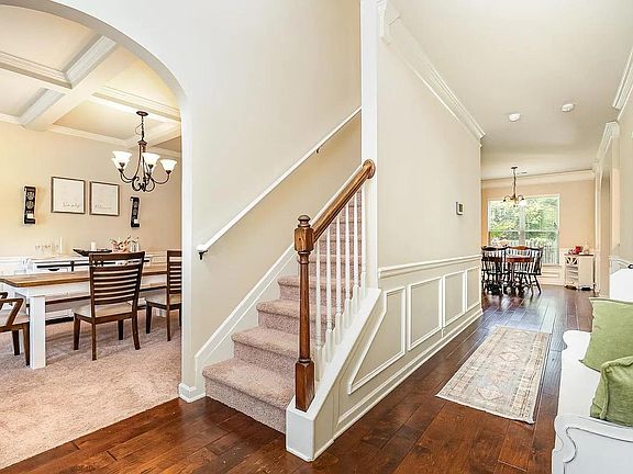 Fox Trace community located in the heart of Simpsonville. Step into a grand two-story foyer with staircase leading to four spacious bedrooms, two updated full baths, and a convenient oversized laundry room. Endless hot water from Tankless Hot Water system. The chef's kitchen boasts quartz countertops, refinished hardwood floors, and premium stainless steel appliances, seamlessly flowing into the bright breakfast nook and open-concept living area ideal for entertaining. The expansive living room centers around a chic gas fireplace, creating a cozy yet contemporary vibe. Outside, enjoy a private, fenced backyard with a covered patio. The luxurious primary bedroom suite on the second level features a sitting area, ideal for a home office or media room. The primary bath offers a frameless glass shower, freestanding soaking tub, dual vanities, and an expansive walk-in closet. Home a block from the community pool and nestled in the family-friendly Fox Trace neighborhood.
