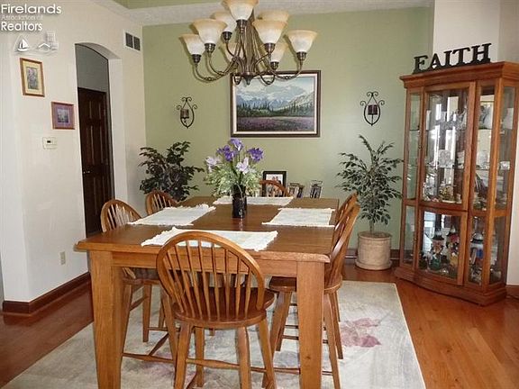 HOME OF DISTINCTION! This 4 bedroom 3 bath home is just the one for you! It has so much to offer starting when you first step inside & see the open floor plan with wood floors, the fully applianced kitchen with Corian countertops & beautiful custom cabinets which opens up to the 2nd floor Trex deck overlooking the scenic view of the farmland. There is a wet bar conveniently located between the kitchen and formal dining room for easy entertaining. First floor laundry comes equipped with newer washer & dryer. There are 2 gas fireplaces, custom ceilings throughout, a finished walk out basement that has a large family room with a full bath and 4th bedroom, wood floors, a workout area, large storage area PLUS an extra one car garage to access in the rear off of the covered patio. The master suite is stunning from the lighted tray ceiling to the double sink vanity, jetted tub, tiled shower & marble floor. The Koi pond is fully stocked for your enjoyment while sitting in your private hot tub.