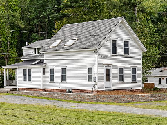 Amazing Cold River frontage for this 4 unit compound. 2-Story home, the perfect spot for the owner, with large eat in kitchen, dining room, office, living room and 2 bedrooms and 1.5 bath. Home has beautiful floors and high ceilings. In same building is an in-law apt that could be attached to the home or separated as it is now. Oversized 2-car garage goes with home. House and 2 cabins are spread on the 3.2 acres, all having views of the Cold River. Both Cabins are unique and interesting. Flat ground for gardens and parking. Seller just installed a new drilled well (7 Gallons a min)to all units. This property is mins drive to Route 12 and I91. and all services. Property is on a dead end road.