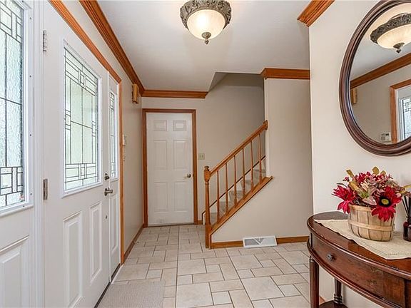 IMMEDIATE OCCUPANCY on this Quality built Rupp residence in the Northridge Plan of desirable Seven Fields. You will be welcomed by a covered useable front porch which leads to a ceramic tile Entry, The formal Living room and Dining Room featuring hardwood flooring. Spacious fully equipped Oak kitchen/breakfast area with Pantry which flows into Family room. Crown molding and chair railing included in first floor. A brick Gas/Log burning fireplace flanked by windows highlights the spacious family room. A first floor laundry completes the first floor. The Master suite features massive tray ceiling, double sinks and whirlpool along with large walk in closet. Three additional large bedrooms and full bath with skylight complete the second floor. The unfinished basement includes 13 course block and can become excellent recreational space. A two can attached garage provides easy of access for the owner. The property includes a private rear deck and very LARGE professionally landscaped