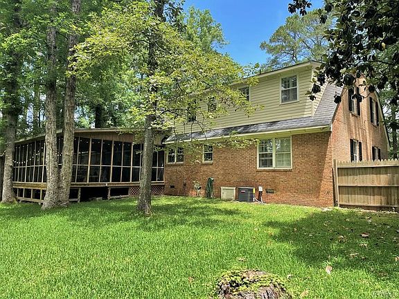So many updates! New Bathrooms, Heat Pumps, Flooring, Water Heater, Appliances and more! Perfectly private screened porch and back yard that overlooks a natural wetlands. The family room boasts exposed beams and a brick accent wall. There is one large bedroom downstairs, with a full bath just outside the door. The remaining 3 large bedrooms are upstairs, including the master. Convenient walk-in storage into the attic. Nice laundry room.. Like the water? There are 2 boat ramps and a new kayak launch within 10 miles. NC's famous Outer Banks are about 80 mi away for a great year-round day trip.