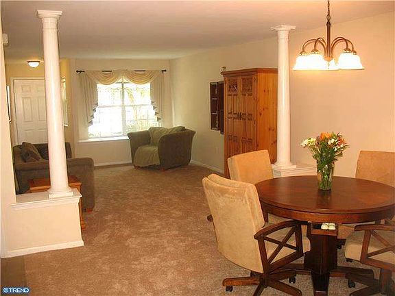 Situated on a private cu de sac with an attractive partial stone exterior, this beautiful, light, airy and spacious almost 2200 square foot townhome is painted in warm and inviting earth tones. The master bedroom suite with cathedral ceiling and ceiling fan features a bonus sitting room, large walk in closet and master bath with stall shower and sunken tub with whirlpool jets. The foyer entry boasts a slate floor and leads into the spacious living and dining room areas that are separated by tasteful decorative columns. A powder room also features slate flooring. The roomy eat in kitchen is highlighted by a center island that has pull out shelving and electric, ceramic tile floor and backsplash, built in microwave, pantry, Oak cabinetry and breakfast nook addition with skylights. A large picture window with seat overlooks the fully fenced in back yard. Sitting adjacent to the kitchen, the family room is complemented by a wood burning fireplace with mantel and hearth that will warm you up on those cold winter nights. Conveniently located on the second floor, the laundry room houses a full size washer and dryer. All new carpeting on first floor, stairs and 2nd floor landing. 3 year old carpeting in all bedrooms. New light fixtures throughout. New roof. Economical gas heat and cooking. Low association fee allows all of the facilities of Newtown Grant including : swimming pools, tennis courts, basketball courts, clubhouse, walking and bike path, activities year round. Police and fire department across the street. Close to shopping, malls, great restaurants and historic downtown Newtown Borough. Award winning Council Rock schools. Don't miss!