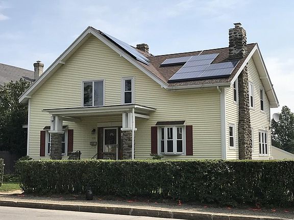 Charming front porch and elegant foyer with dual entry staircase welcome you into this beautiful & spacious 4 bedroom colonial featuring gorgeous original woodwork, large formal living room with fireplace, newly refinished hardwood floors and ash beamed ceiling, formal dining room also with gleaming hardwoods and built-ins, lovely fully applianced updated kitchen with hickory cabinets, Italian tile, oversized island, butlers pantry and breakfast nook overlooking new trex deck to ag pool! Other updates include boiler, siding, windows, roof, transferable solar lease, mini-split heat/ac unit on each floor and newly sealed driveway leading to 1-2 car detached garage! Set conveniently on corner lot with park down the street!