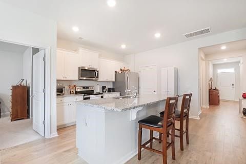 Beautiful, like new, 3 bed, 2 bath home located in Ellis Park at Savannah Quarters. This home, constructed in October of 2022, offers a large kitchen with granite countertops and an island, stainless steel appliances, a master suite with a large master bath and walk-in master closet, 2 car garage, 2 spacious guest bedrooms, and a back patio perfect for outdoor get-togethers. The community offers tennis, golf, a playground, a community pool, and a fitness area. Close to I-95 and popular stores and restaurants such as Costco, Starbucks, Lowe's, Crumble Cookie, Chick-fil-A, and many more.