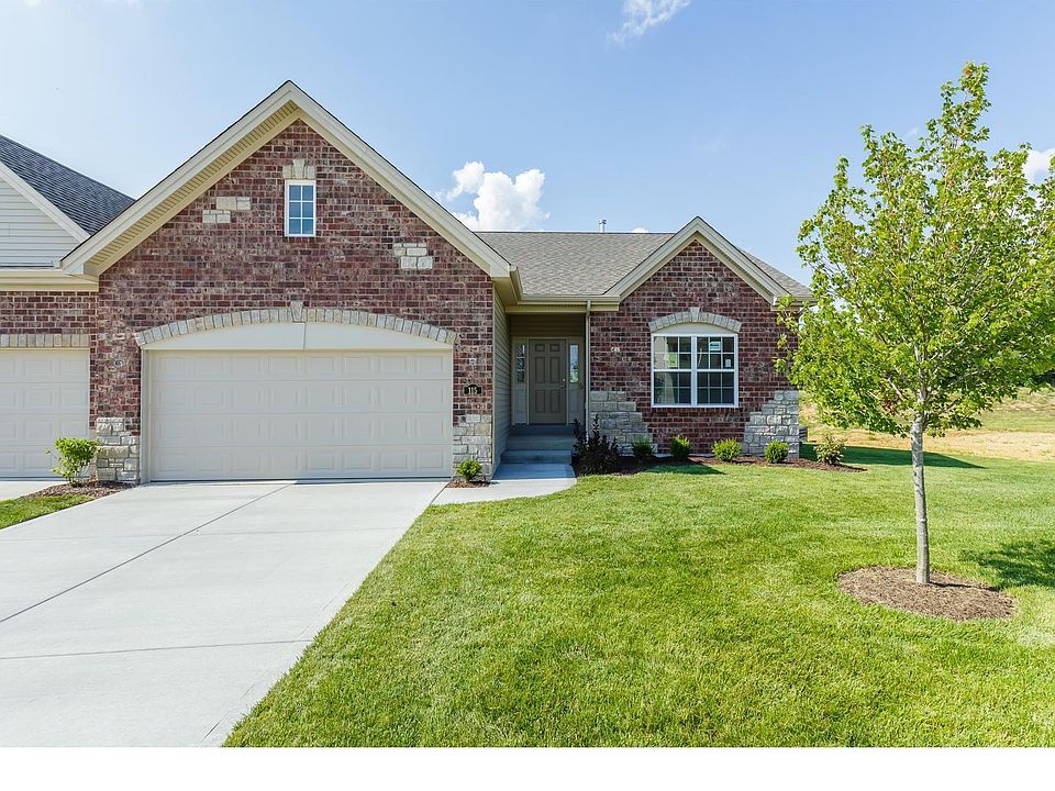 Low Maintenance Luxury Villa Living by Bridgewater Communities, your villa experts. Not only will you be the first owner, this home has been built to paint stage allowing the buyers to make personal selections & finish choices! This popular Warson plan has 2 BD, 2 BA & 1,600 s/f of open, smart living space. The ext has a rich brick & stone elev, arch shingles, prof landscape, full yard sod, irrig system, low maint vinyl siding & a wr iron mailbox. Features inc an O/Sized 2 car garage w/opener, stately 9clngs w/vaults, large rectangular island, Whirlpool appl, W/I corner pantry, main flr laundry, 32 door openings, spacious Mstr Suite with W/I closet, 90 vanity in the Mstr Bath, transom window in the hall bath, R/I bath in the LL & a 12x12 low maint deck off of the Dining Area. A low monthly fee covers lawn, landscape & snow removal (per C&Rs). This intimate, all cul de sac community has easy access to Hwys 40-64 & 70, shopping, restaurants, health care, golf, rec & fitness cntrs.